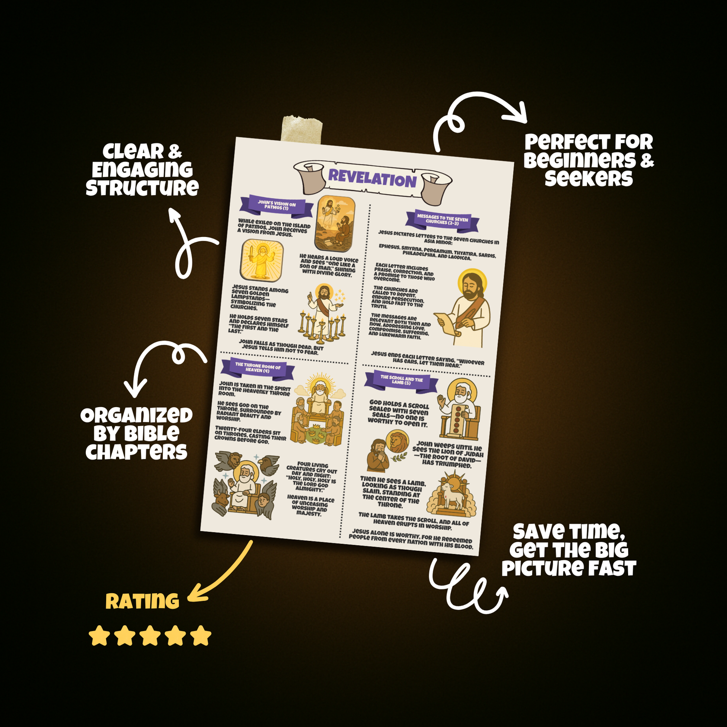 This illustrated guide helps you grasp the entire Bible — from Genesis to Revelation — with visual clarity, key themes, and Christ-centered focus.