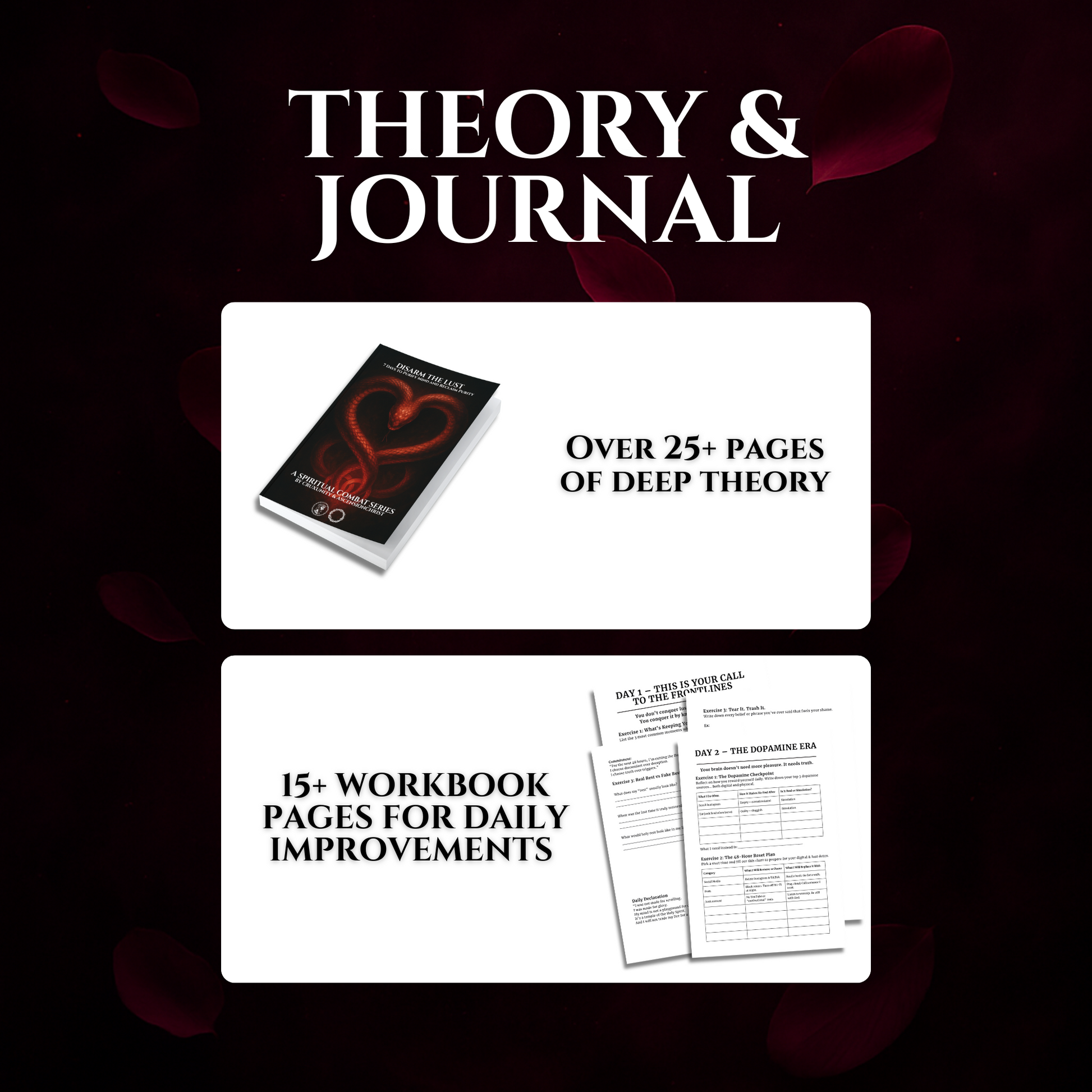 Each guide includes 25+ pages of spiritual insight (theory) and 15+ pages of hands-on practice, designed to guide you step-by-step toward transformation.